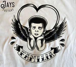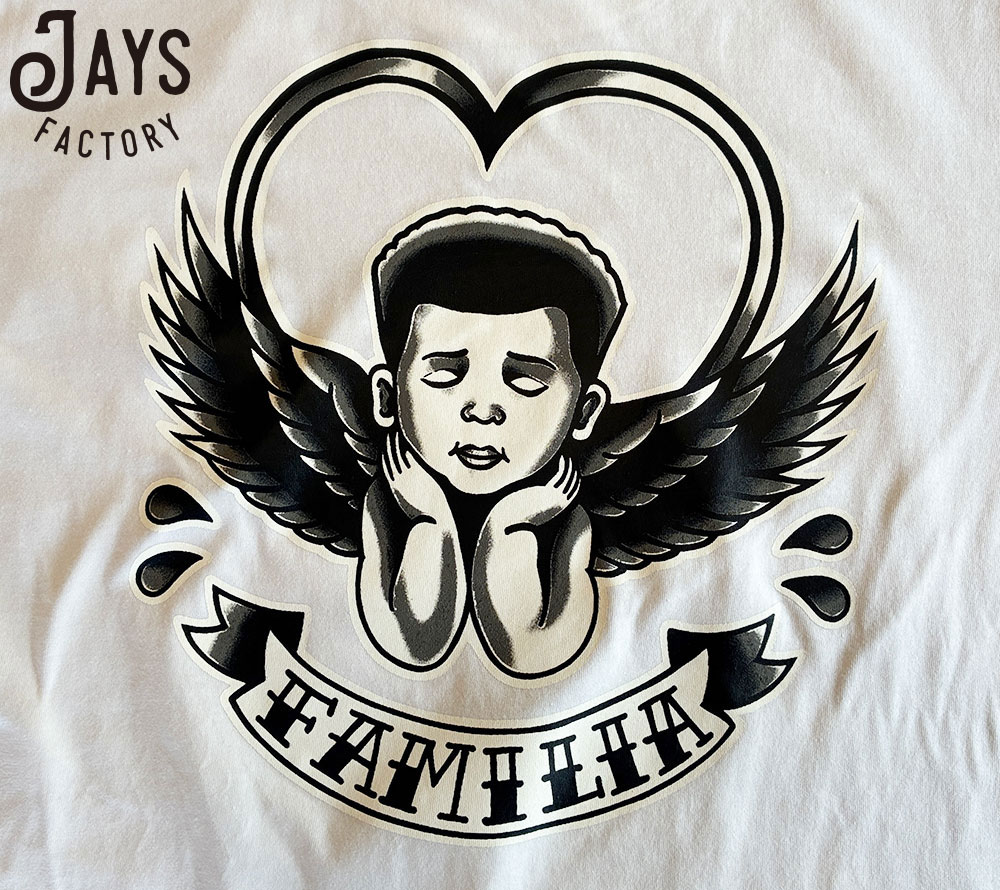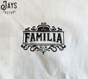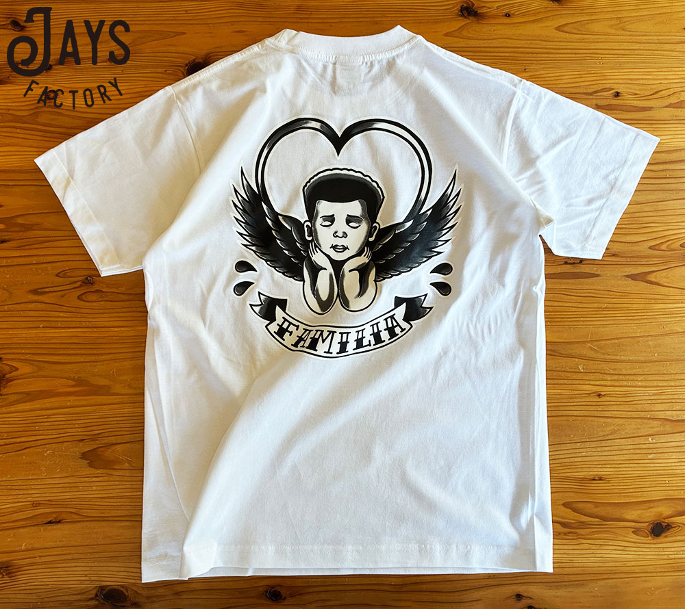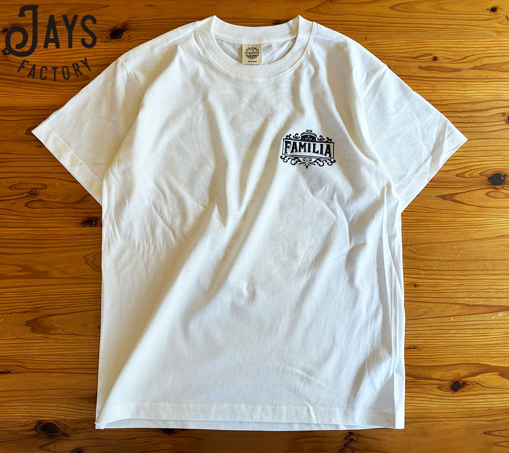 オーガニックコットンTシャツ [OGB-910] TRUSS-トラス + 左胸1色 + 背中4色 シルクスクリーンプリント 2025年11月22日 ■ボディオーガニックコットンTシャツ [OGB-910] TRUSS-トラス01ホワイト Mサイズ ■シルクプリント左胸:ブラック W95xH70mm 胸衿リブ下8cm背中:ブラック、ホワイト、ライトグレー、ダークグレー W300xH322mm 背中衿リブ下7cm 刺繍価格ページ刺繍カラーページシルクプリントページプリントカラーページ DTF フルカラープリントインクジェットフルカラープリントカッティングプリント