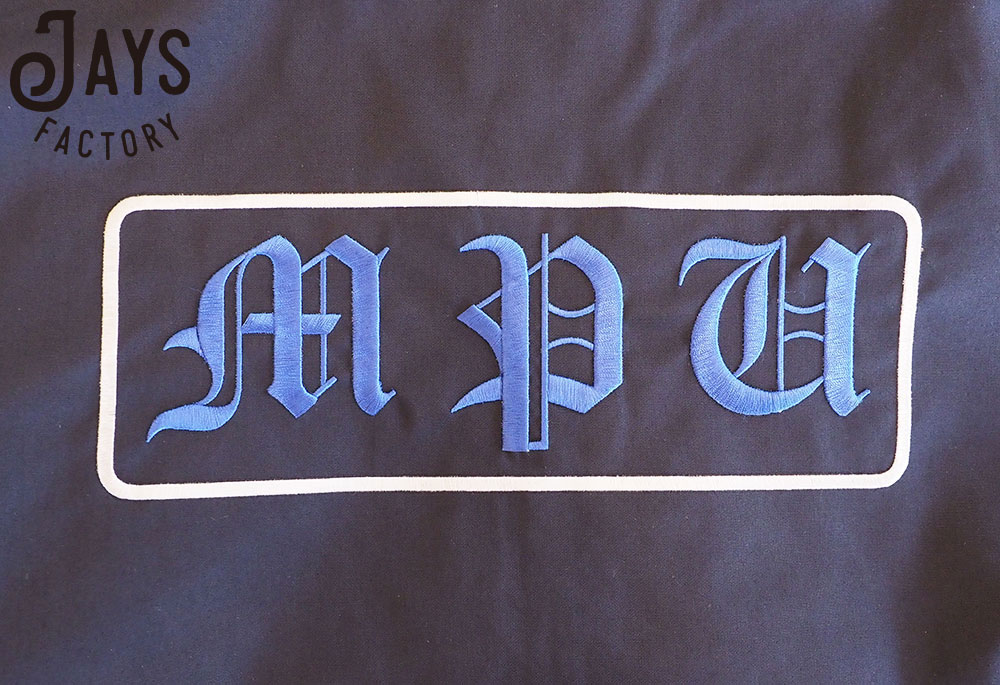 T/C スイングトップ(裏地付) [7078] United Athle-ユナイテッドアスレ + 左胸 ワッペン縫い付け +左肩 個人名刺繍 + 背中 2D刺繍 ビッグサイズ 2025年10月03日 ■ボディT/C スイングトップ(裏地付) [7078] United Athle-ユナイテッドアスレ086ネイビー ■左胸ワッペン縫い付けグレー(23番 1142)、ゴールド(5番 1710) W85xH85mmベース:ブルー(33番) ツイル 縁:ヒートカット 胸衿下7.5cm■左肩個人名刺繍 グレー(23番 1142) H14mm 書体(3.筆記体)■背中2D刺繍:グレー(23番 1142)、ブルー(13番 2520) W280xH103mm 背中衿下12.5cm 刺繍ページ刺繍カラーページシルクプリントページプリントカラーページDTF フルカラープリントページ インクジェットフルカラープリントカッティングプリント Tweet «前 次» サンプルページ