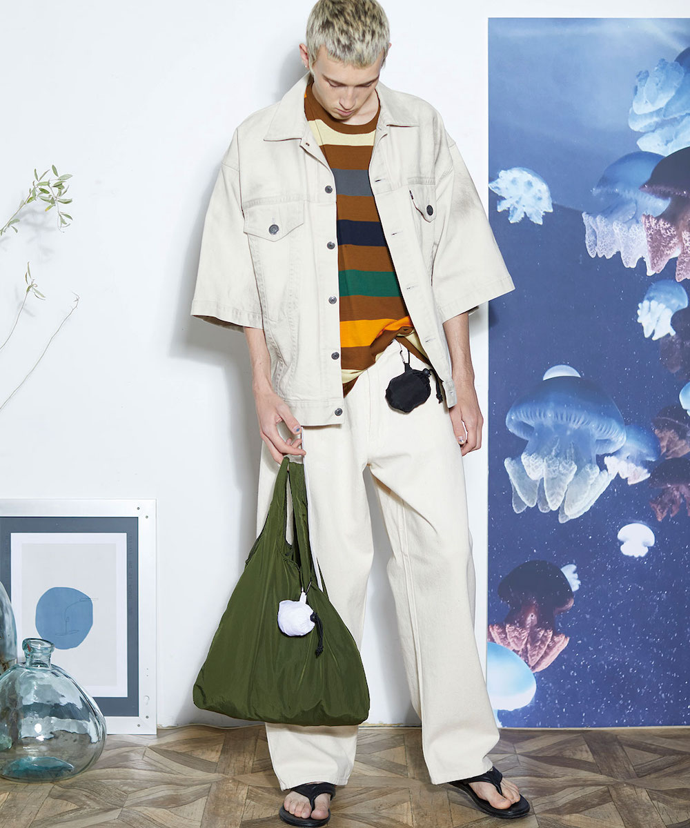 持ち運びやすいポケッタブル仕様、軽いナイロン素材のエコバッグです。