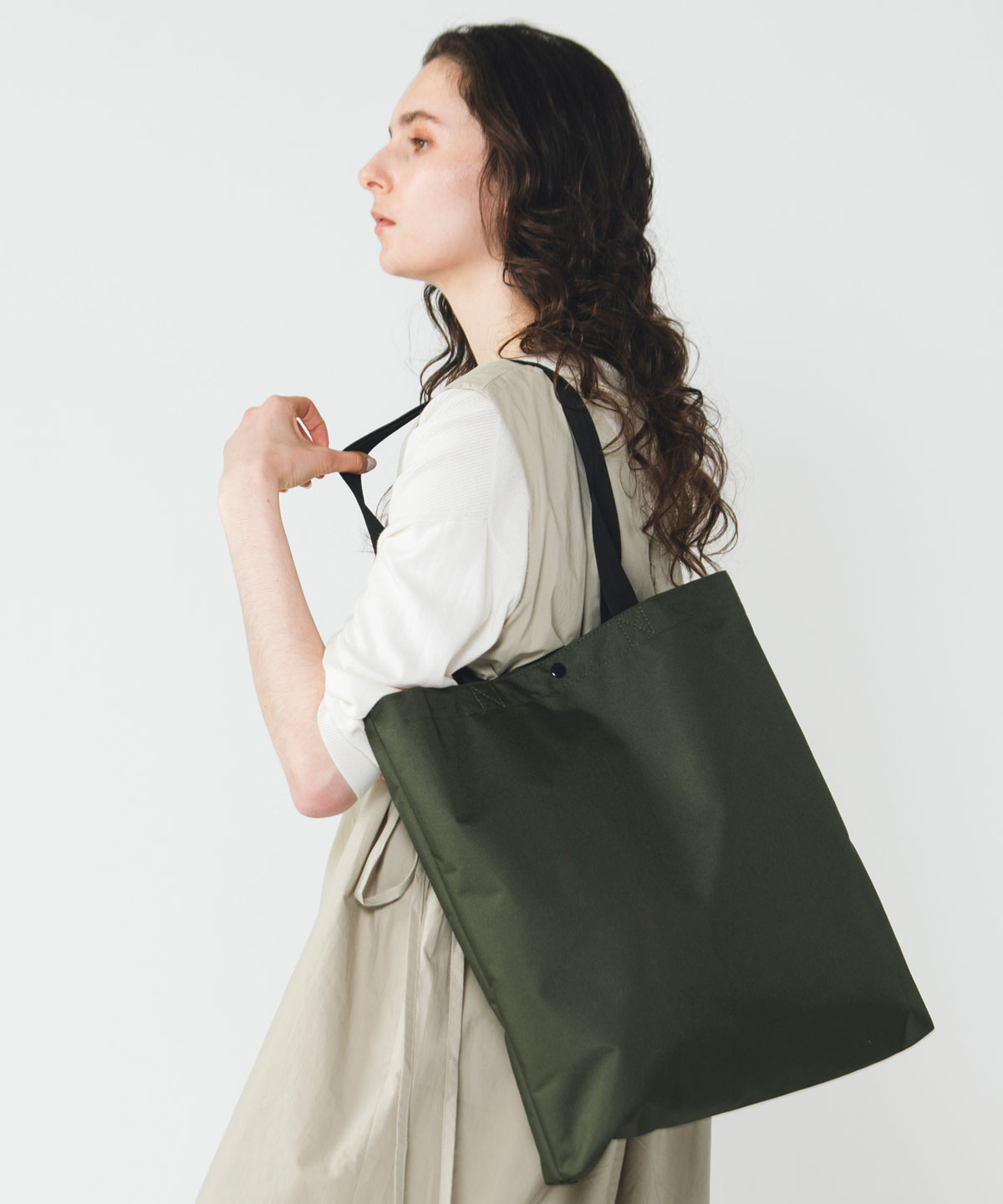 再生ポリエステルを使用した少し大きめなトートバッグ。