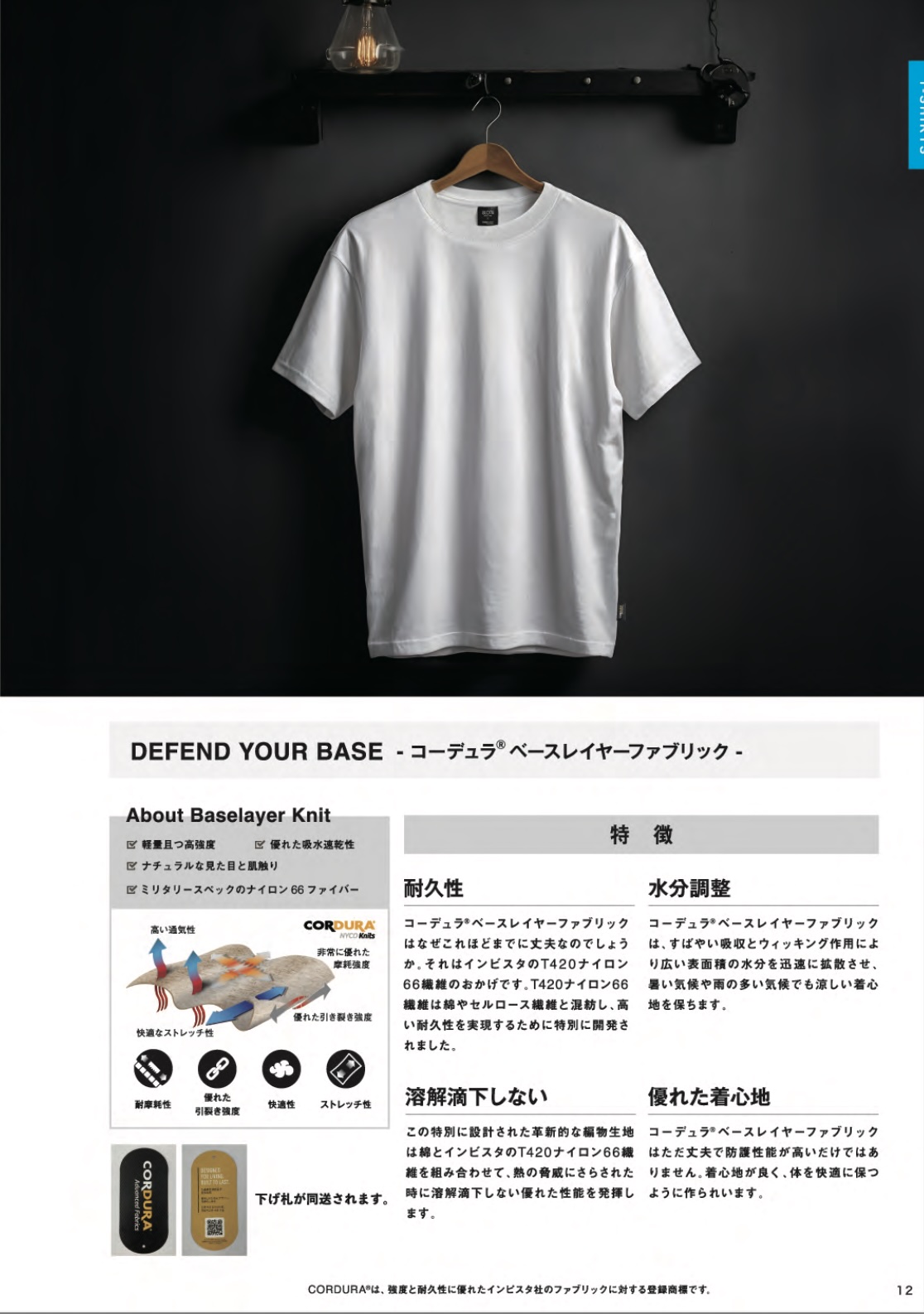 耐久性の高いコーデュラ素材を使用したTシャツです。