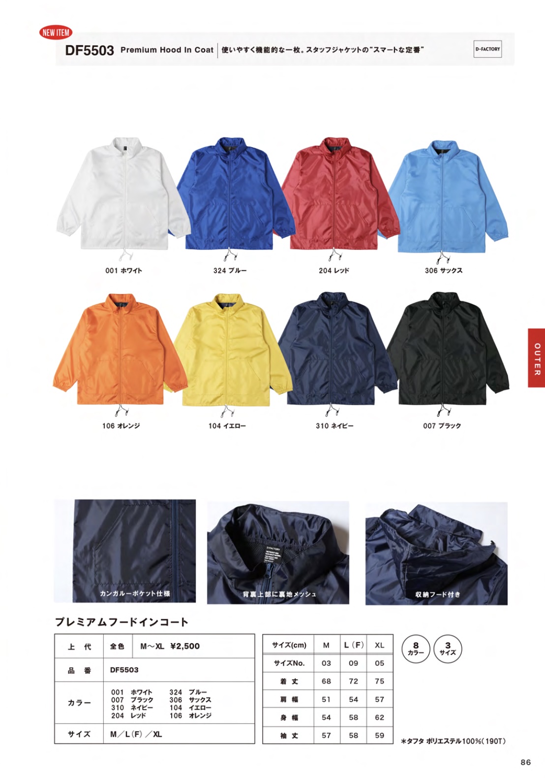 カンガルーポケット・収納フード・背裏上部メッシュ仕様。
