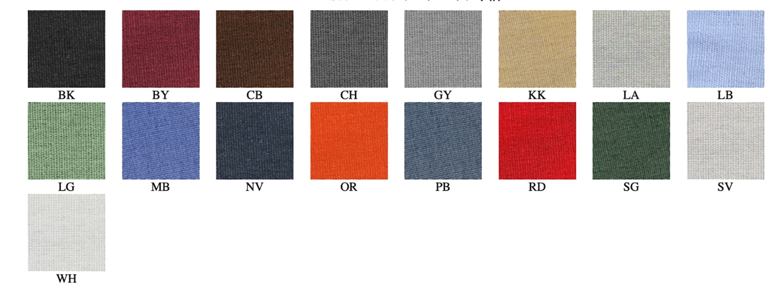 | BK ブラック | BY バーガンディ | CB チョコレート | KK カーキ |
