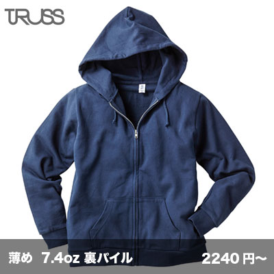 スタイリッシュなシルエット、薄手の7.4オンス裏パイル素材のパーカ。