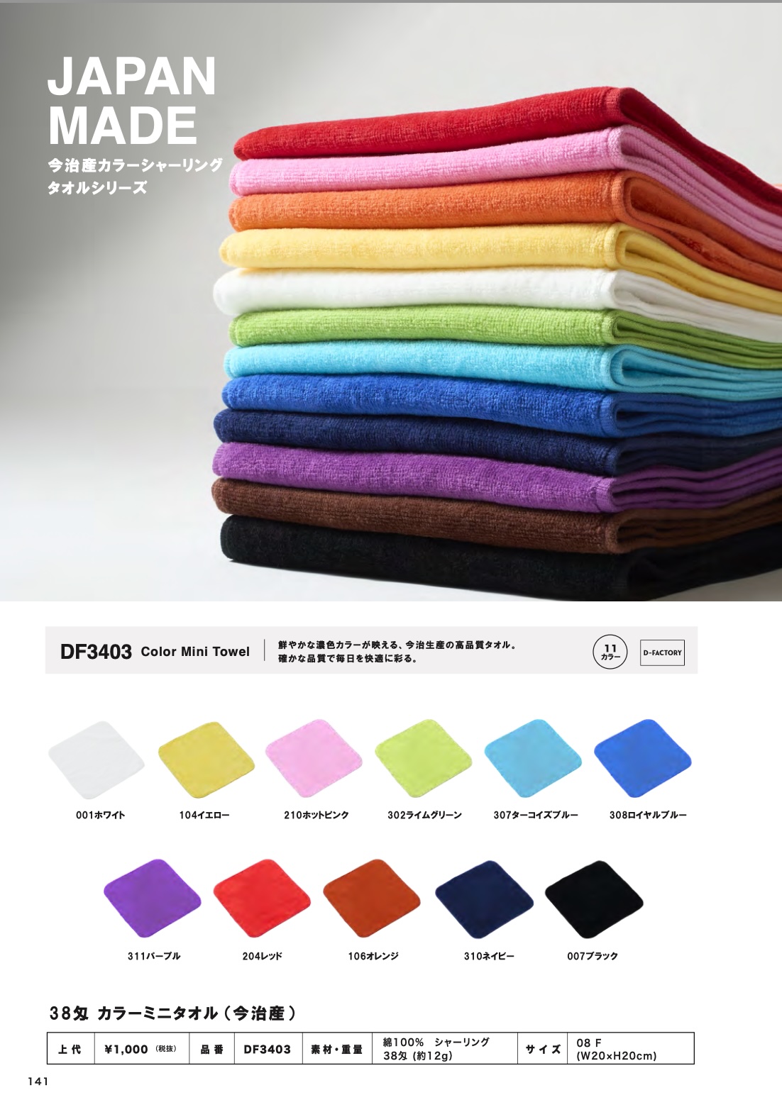 今治産 カラーミニタオル [DF3403] D-FACTORY-ディーファクトリー