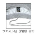 ウエストゴム&紐、両脇ポケット有り、ヒップポケット無し、裾リブ仕様。